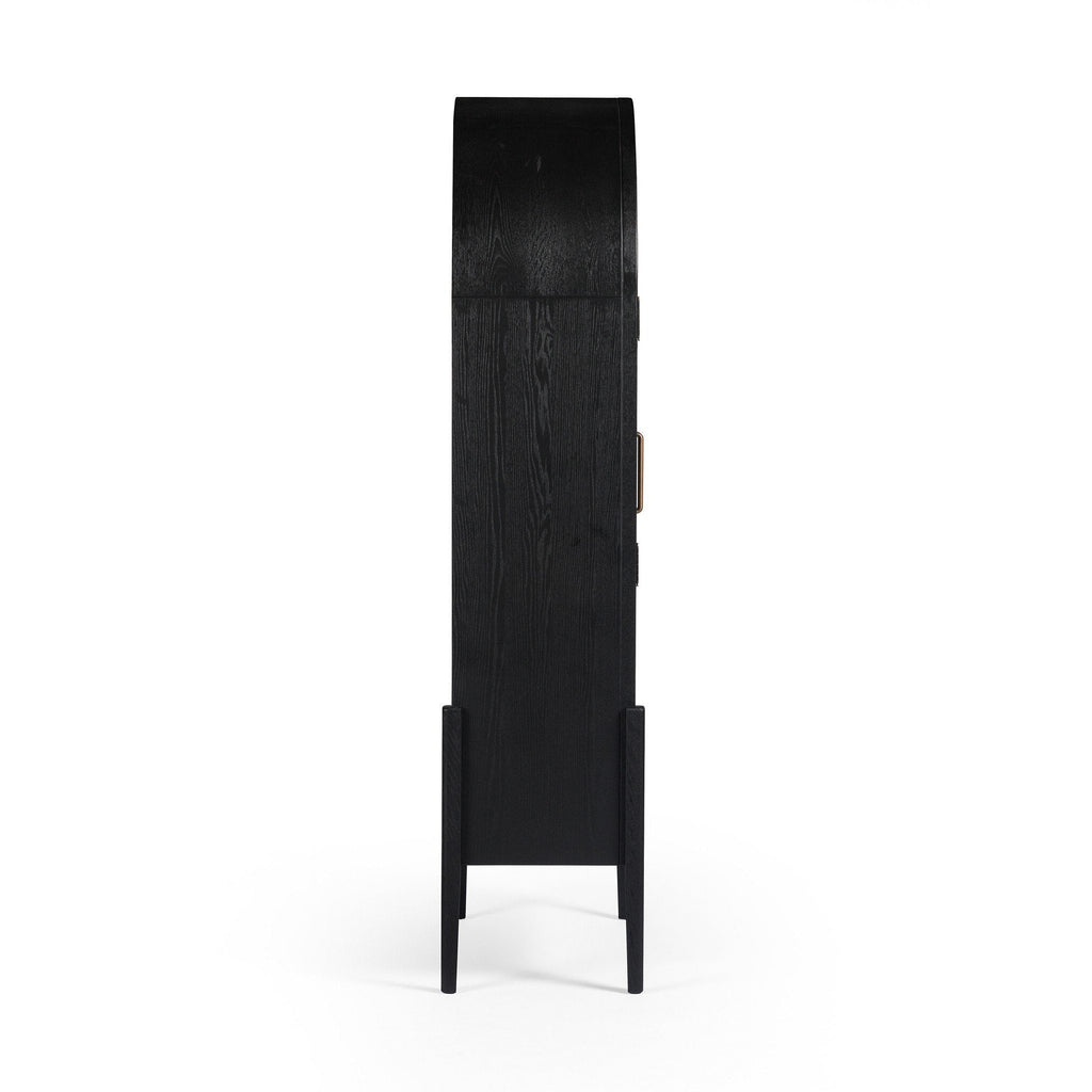 The Tuma Tall Cabinet is a beautifully shaped cabinet made from solid oak and features spacious interior shelving with panel door fronts to conceal your treasures. The iron handles are finished in antique brass and the interior shelving is fixed. Also available in glass front options.