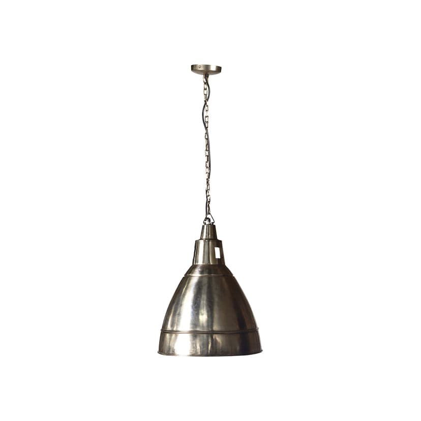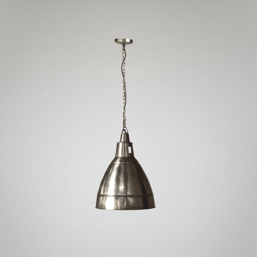 Nickel plated finish paired with a streamlined, cylindrical silhouette for a clean architectural presence. Suspended single socket provides focused, downward illumination while maintaining a minimal visual footprint. Compact scale allows for standalone placement or grouped installations. Accommodates one bulb up to 60 watts.