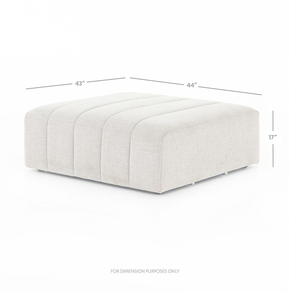 The combination of low styling and wide vertical channels creates a modish Italian look. This piece features a modular framework and a resilient, sandstone-colored cover that can be used in any space. The matching sectional also features a durable performance fabric that can withstand high traffic and wear.
