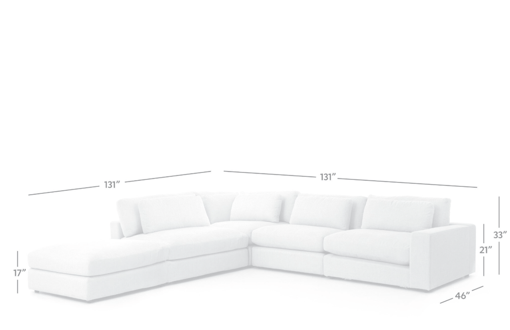 The Bryant 4 Piece Sectional is modular so you can adjust the configuration to your needs. This sofa sits low and deep allowing for a loungy relax feel. Ottoman included in pricing. Part of the Bryant Collection.